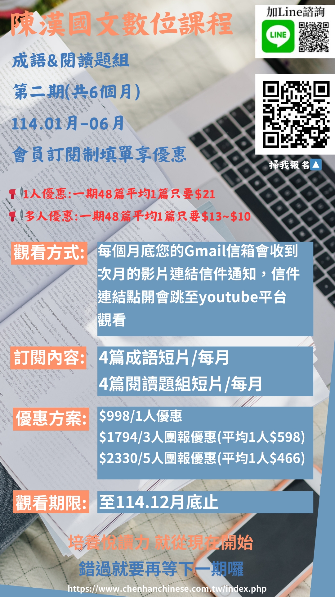 📢陳漢國文第二期 114.01月-06月(共6個月) 【成語&閱讀題組】會員訂閱制